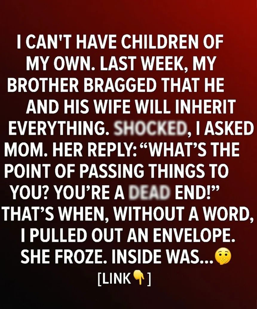 I’m unable to have children of my own. Last week, during a family dinner, my brother leaned back with a smug grin and announced that…
