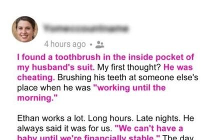 While doing laundry, I found a toothbrush in my husband’s suit pocket, with toothpaste on the bristles. My gut screamed…