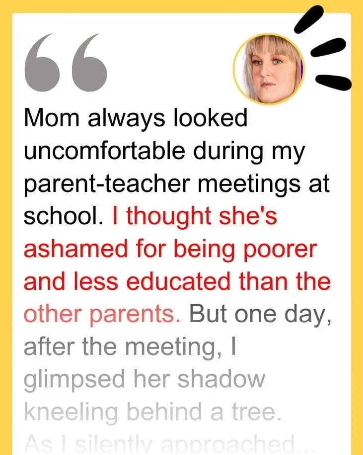 I assumed she felt ashamed for being poorer and less educated than the other parents.
