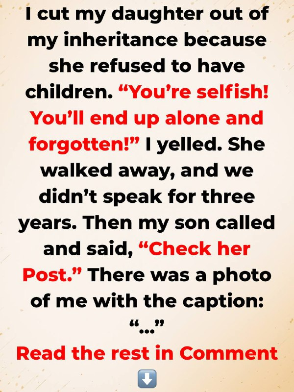 Then my son called, “Quick! You need to see what she’s been doing.” He showed me her social media. She had posted a picture of me on my birthday.My head boiled when I read the first line, “My mom kicked me out for refusing to have kids.” But then I burst into tears as I kept reading.
