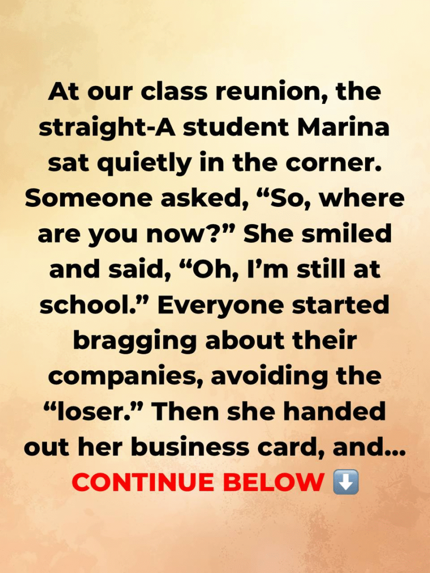 • At the class reunion, I met Maria who used to be our straight-A student. Dressed in high fashion, a chauffeured car, a business — everything seemed to be going well for her.