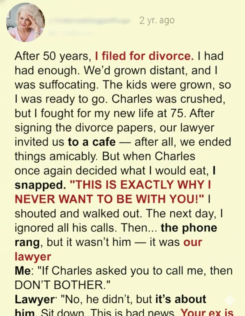 The quarrels became so frequent that when Rose eventually requested a divorce, Charles decided not to stop her. They were both advanced in age, and the emotional turmoil was not good for them. When they informed their lawyer, Mr.