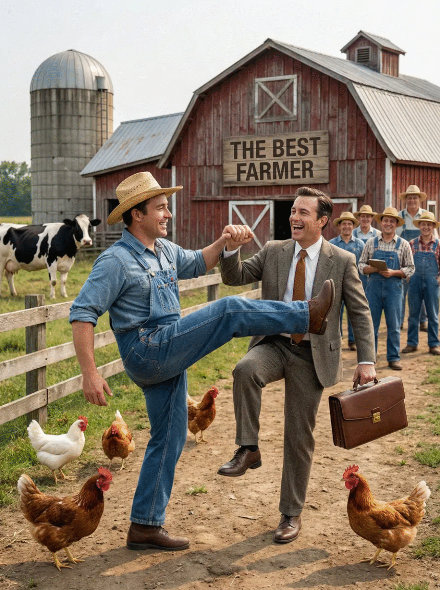 The lawyer was on all fours when the farmer’s third kick to his rear end, sent him face-first into a fresh cow pie. Summoning every bit of his will and remaining strength the lawyer very slowly managed to get to his feet