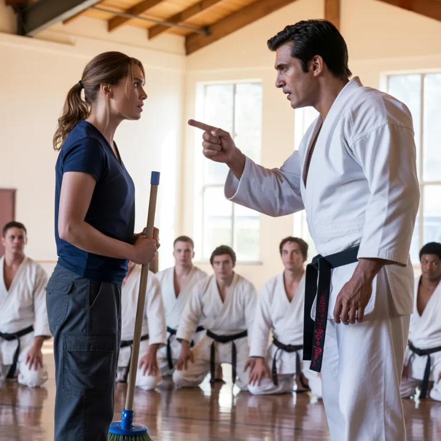 A black belt karate fighter yelled at a simple cleaner and tried to humiliate her in front of all the athletes but one action from the girl shocked the entire gym