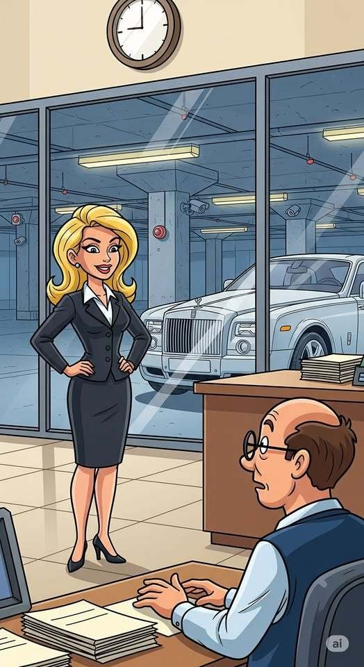 The car is parked on the street in front of the bank; she has the title and everything checks out. The bank agrees to accept the car as collateral for the loan. The bank’s president and its officers all enjoy a good laugh at the blonde for using $250,000 Rolls as collateral against a $5,000 loan.