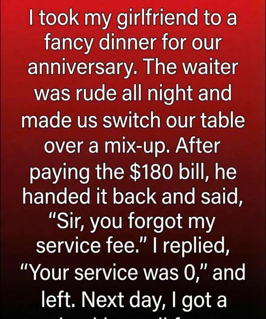 It reminded me that standing up for yourself doesn’t require anger, and dignity doesn’t come from confrontation. That dinner didn’t turn out the way I had planned, but it left me with something more valuable: the understanding that how we allow ourselves to be treated defines the meaning of any experience far more than the setting ever could.
