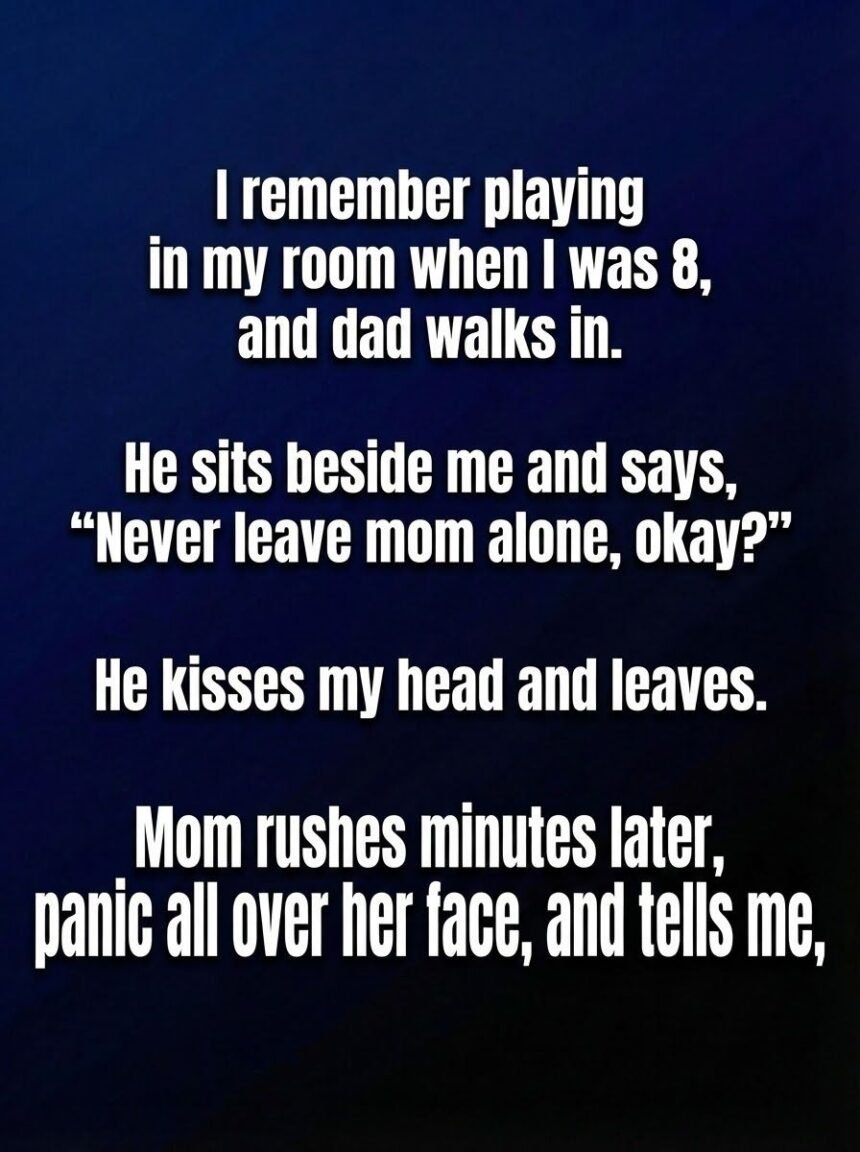 It sounded strange, almost unnecessary, but I nodded without question. He smiled, kissed my head, and quietly left the room. I returned to my toys, unaware that something important had just passed between us.