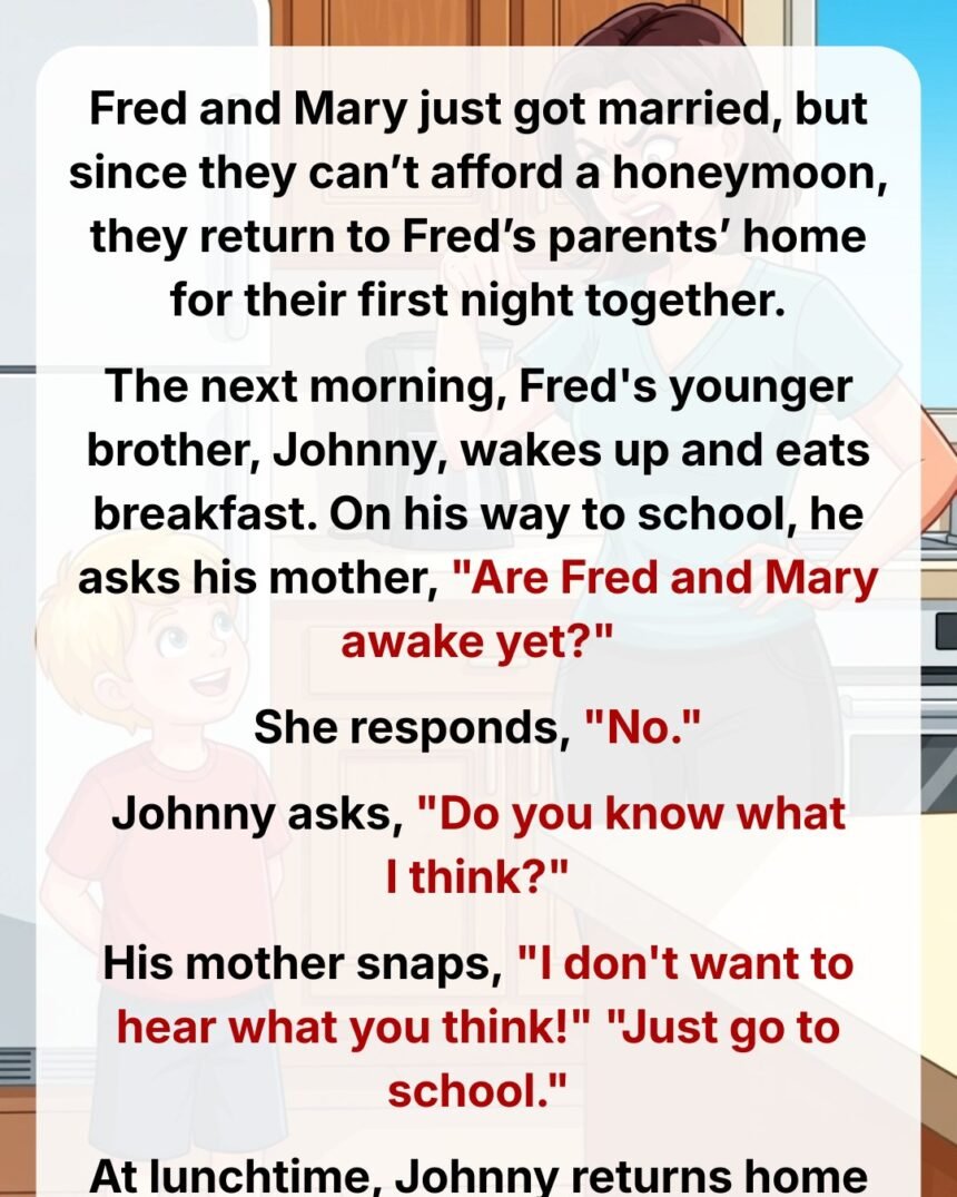 After school, Johnny returns home and inquires once more, “Are Fred and Mary awake?”