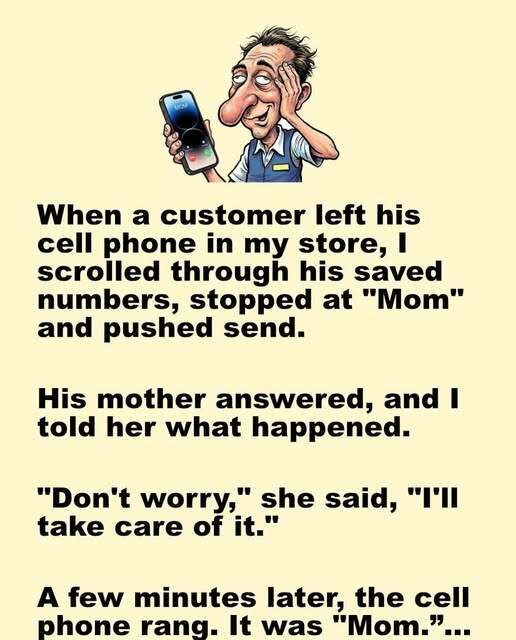 When a customer left his cell phone in my store, I scrolled through his saved numbers, stopped at “Mom” and pushed send. His mother answered, and I told her what happened. “Don’t worry,” she said, “I’ll take care of it.”