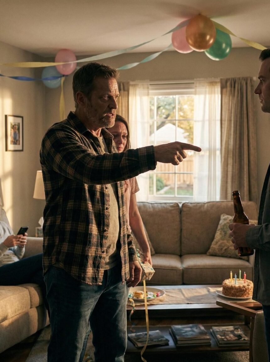 The living room was bright with balloons and soft music when Frank arrived, still carrying the scent of the long road on his jacket and a carefully wrapped gift in his hand. The party felt warm and cheerful at first glance, but something in the air shifted the moment he saw his daughter. Emily stood near the hallway, smiling politely at guests, yet her expression didn’t reach her eyes.