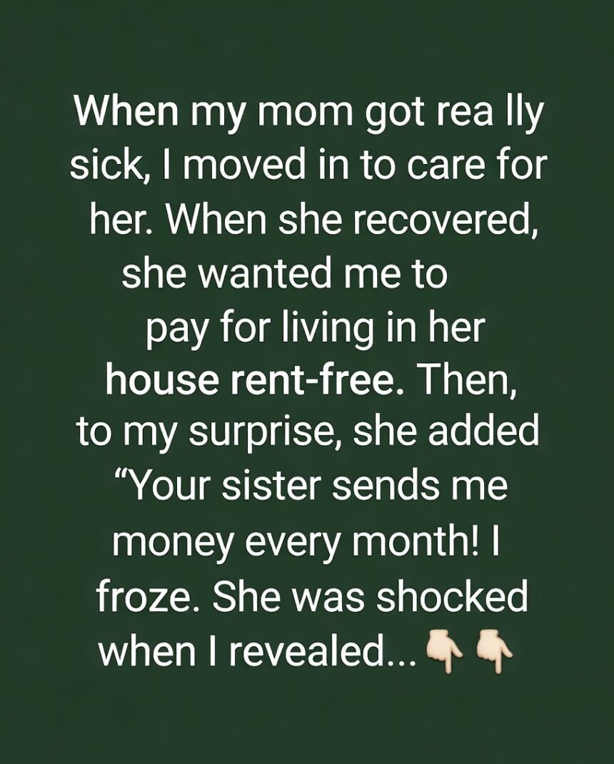 “You should start paying rent now that you’re living here. Your sister sends me money every month.”Her words stunned me.