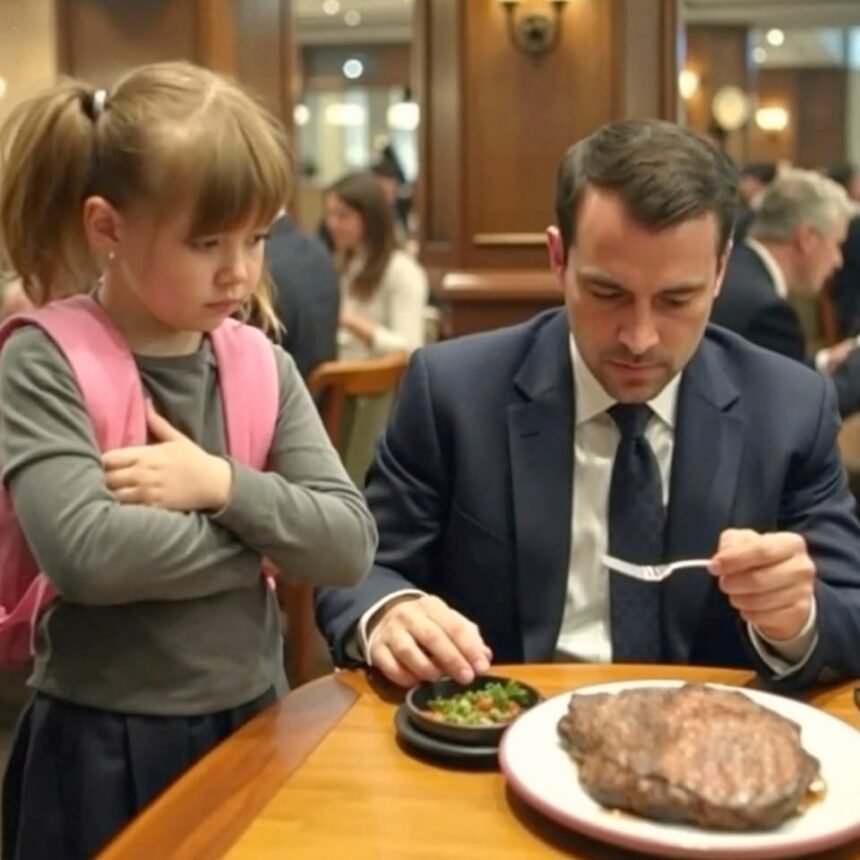 The voice was so soft David Ashford almost thought he’d imagined it, a whisper cutting through the ambient noise of Maison Laurent—crystal glasses clinking, silverware scraping fine china, the low murmur of wealth conducting its evening rituals. He’d been about to take the first bite of his dry-aged ribeye, medium-rare, presented on white porcelain with microgreens arranged like a painter’s afterthought. His fork hovered in mid-air as he turned toward the sound.