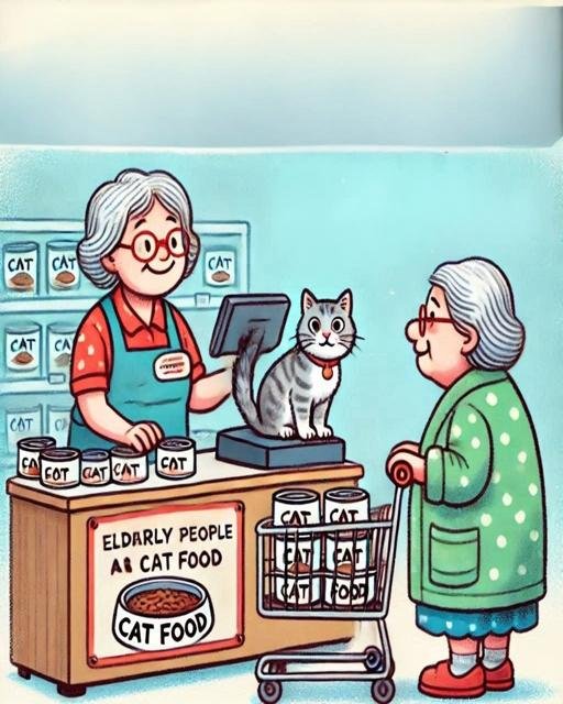 Frustrated, the little old lady went home, grabbed her cat, and brought it back to the store. Satisfied, the cashier sold her the cat food. The next day, she returned to buy two cans of dog food.