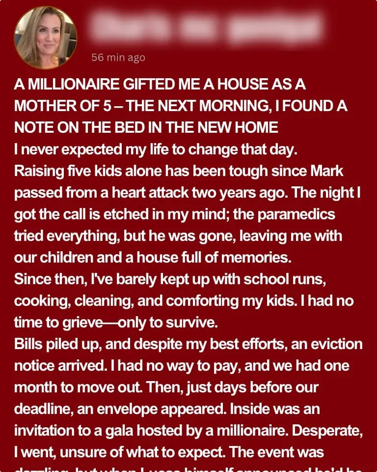 A Millionaire Gifted Me a House as a Mother of 5 – When I Entered and Read the Note Left Inside, I Froze in Shock
