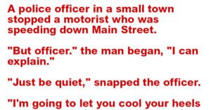 A police officer in a small town stopped a motorist who was speeding down Main Street. “But officer.” the man began, “I can explain.”