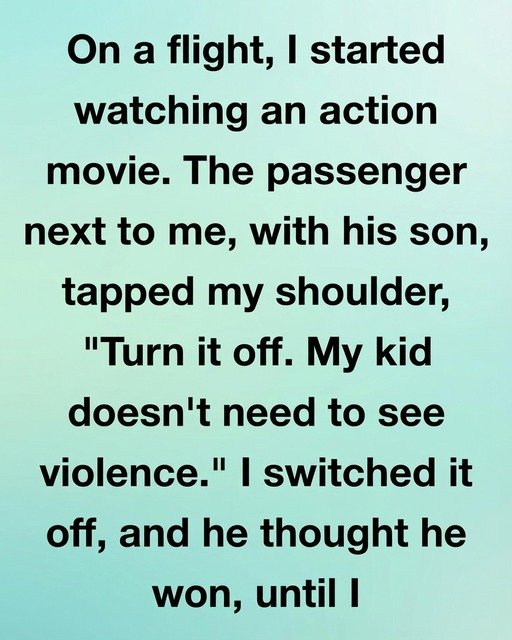 At first, I felt slightly annoyed—after all, I had chosen the movie quietly, using my headphones, and wasn’t disturbing anyone. But when I glanced at his son, a small boy clutching a stuffed dinosaur and staring nervously at the seat in front of him, I sensed there was more to the story. The father looked stressed, tired, and protective—not confrontational.