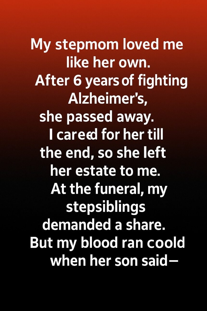 At the funeral, my stepsiblings demanded a share. But my blood ran cold when her son said, I didn’t expect the reading of the will to feel like a second funeral, but the tension inside the attorney’s office was heavier than the grief we had shared only days before. I had known my stepmother, Elaine, for most of my life, and although she had married my dad when I was already a teenager, she stepped into the role of a mother gently, never forcing me to accept her but earning my trust through kindness.