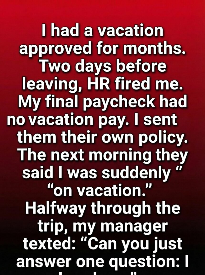 The next morning, a surprising message arrived. There had been a “misunderstanding,” they said. According to their new explanation, she was not terminated after all—she was officially on vacation.