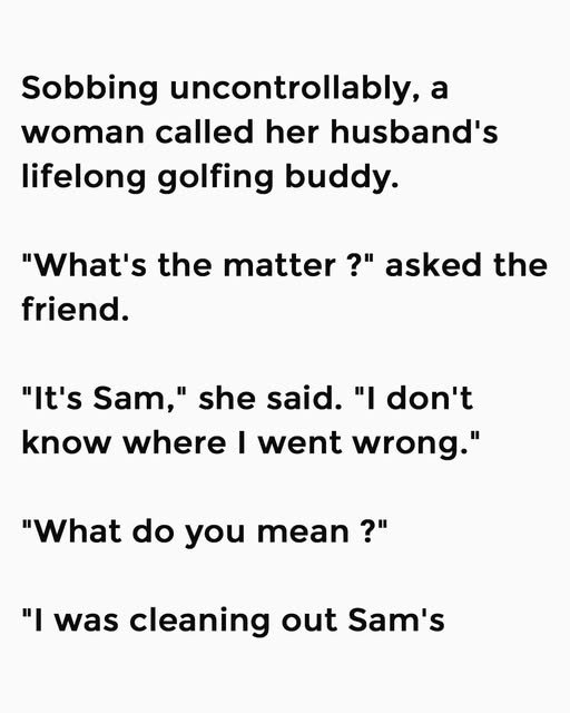 Sobbing uncontrollably, a woman called her husband’s lifelong golfing buddy. “What’s the matter ?” asked the friend. “It’s Sam,” she said.