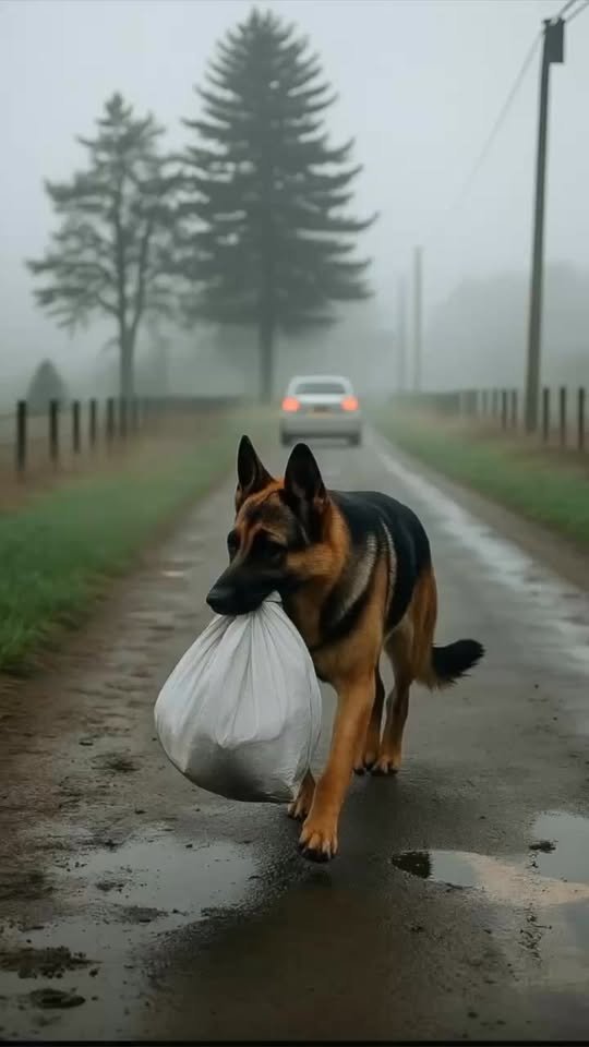 She watched in surprise as the Shepherd approached the corner. Suddenly, a car braked next to the dog. The driver didn’t even turn off the engine: he simply opened the door, skillfully grabbed the bag from the dog’s mouth, and drove off immediately, disappearing around the corner.