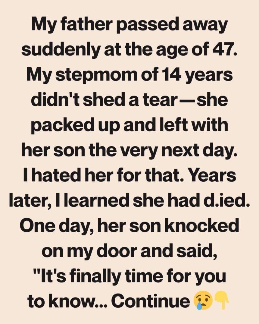 My father d.ied suddenly at just forty-seven. At least, that’s what everyone told me. One moment he was laughing in the kitchen, and the next, I was standing at his funeral, numb and confused.