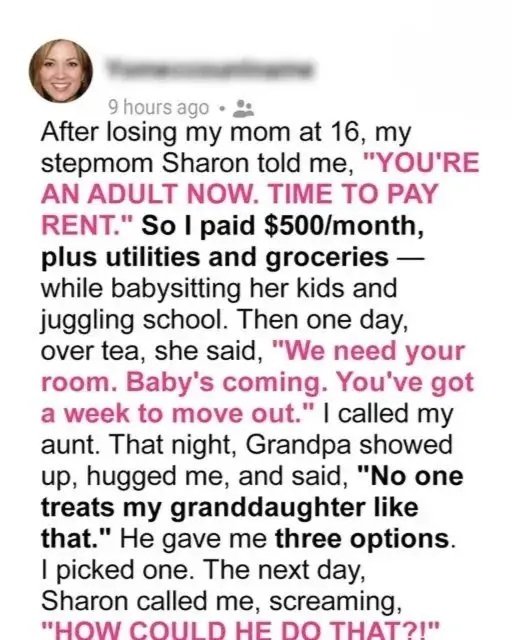 One afternoon, Sharon placed her teacup down and said, “We need your room. The baby’s coming. You have a week.” Her voice was calm, rehearsed.