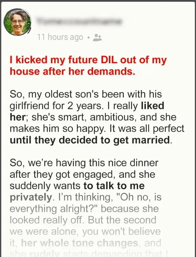 Am I Wrong for Kicking My Future Daughter-in-Law Out of My House after Her Demands?