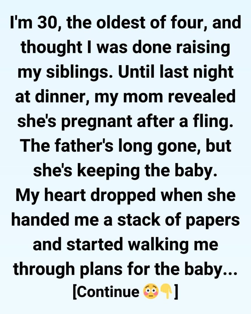 My siblings looked shocked, but I… I felt something deeper. A familiar weight settling on my shoulders. She went on to explain that it happened after a short fling, that the father wasn’t in the picture, and that she was keeping the baby.