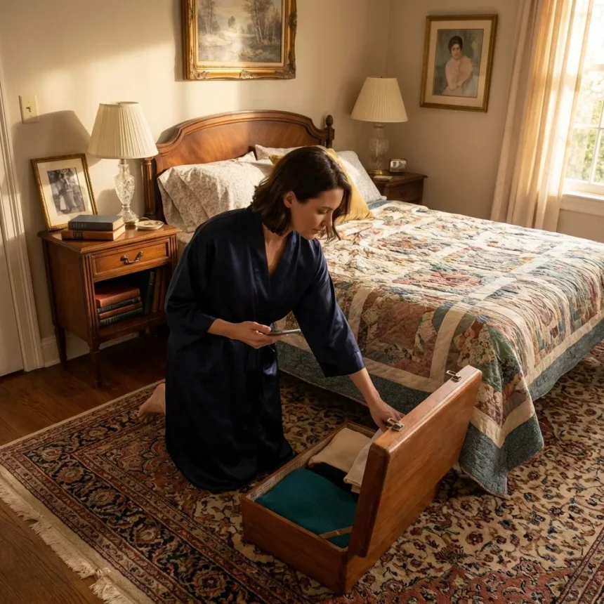 I read it three times. Then I set the phone down on the nightstand, stood up, and walked to the guest room. The chest was open.