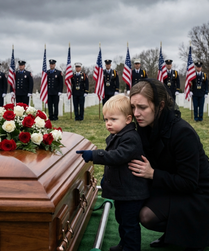Small fingers wrapped tightly around his mother’s hand, the boy took hesitant steps toward the sealed coffin—too young to understand why it was closed, yet somehow aware that something was wrong. Suddenly, he stopped. His wide blue eyes fixed on the polished wood.