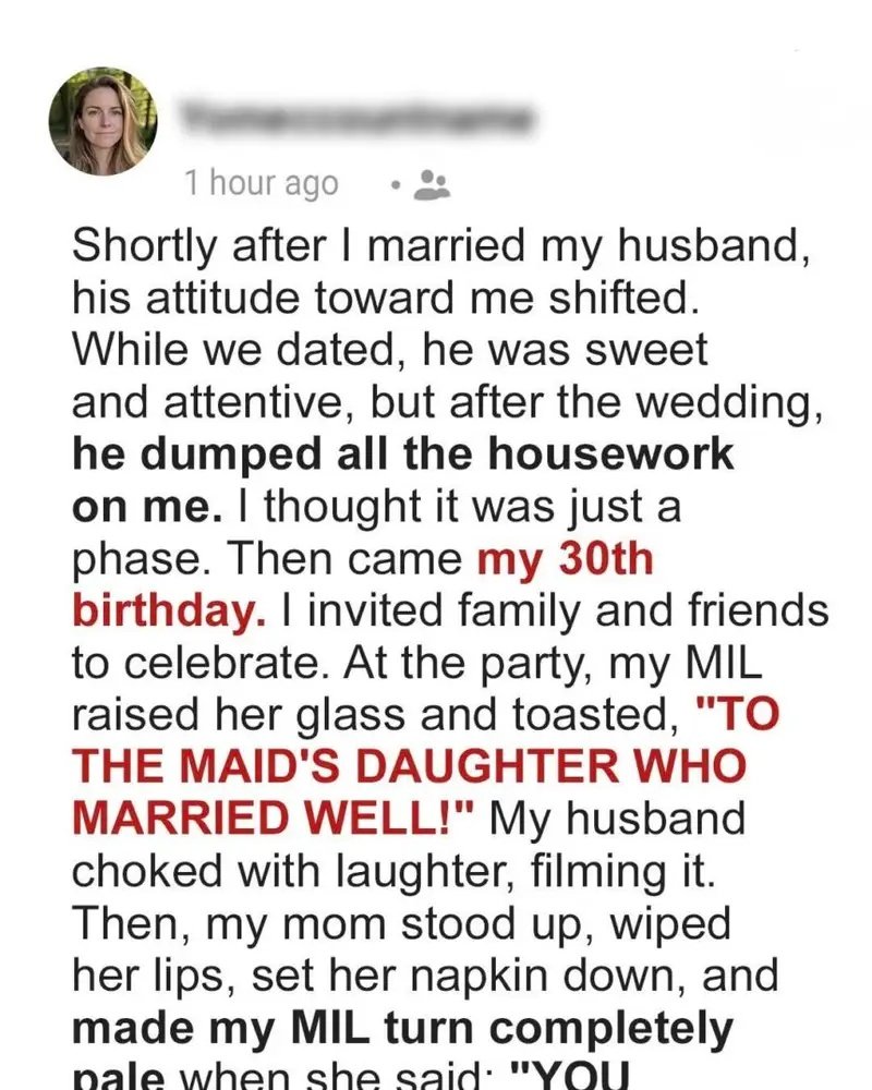I simply walked away. Later, he sent a pathetic text: “Didn’t mean it like that.” As if it hadn’t been a rehearsed humiliation. I filed for divorce — with my mother covering every legal cost.