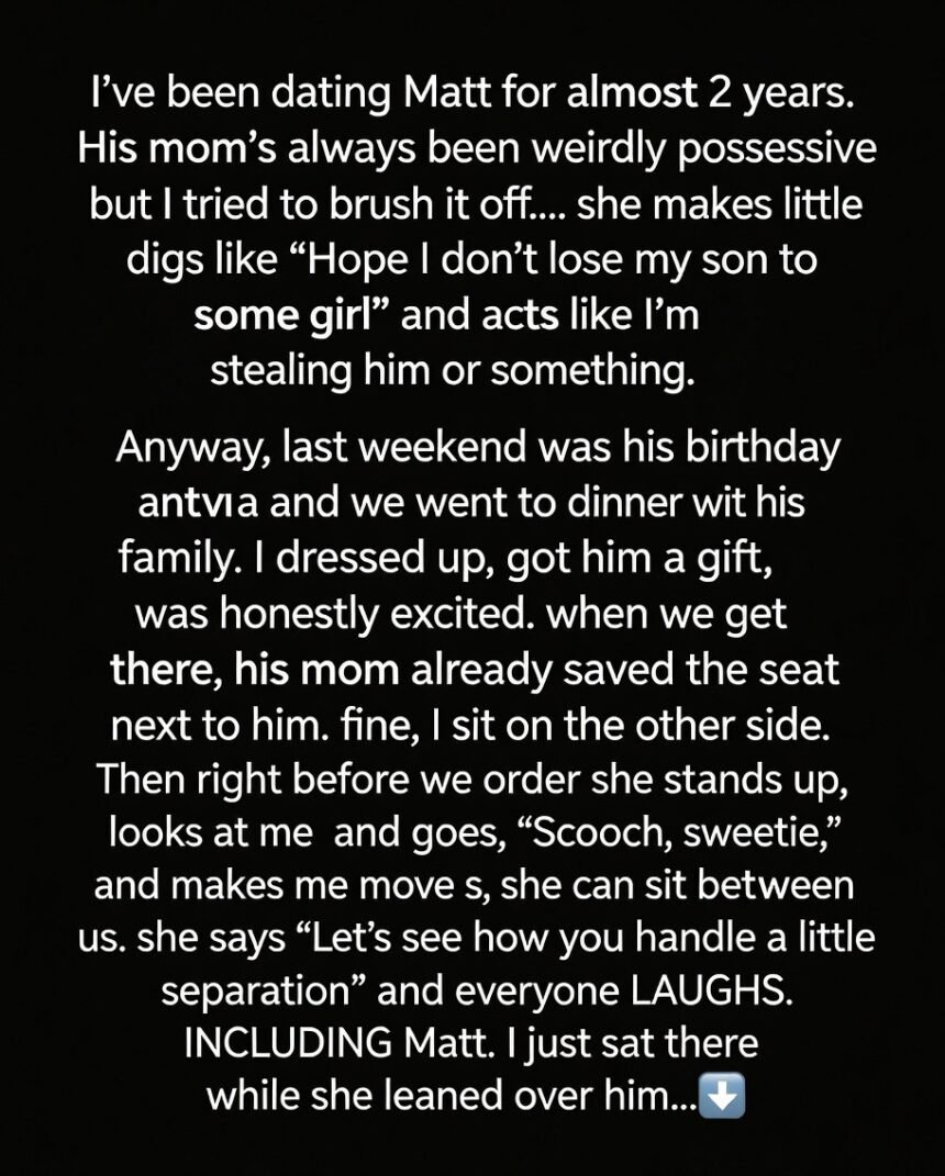 Matt and I had been together for two years, and things were mostly great… except for one ongoing obstacle: his mother, Diane. She carried herself with that polished, old-school elegance, the kind that made people lean in — and hid her passive-aggressive digs behind a sweet smile. I’d always tried to be polite, thinking I could win her over.
