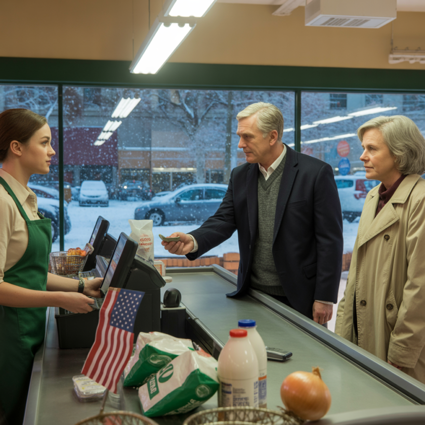 You go to the place where they know your name, where the aisles are familiar. The elderly woman ahead of me was counting coins onto the counter with trembling fingers. She wore a threadbare coat and a faded scarf.