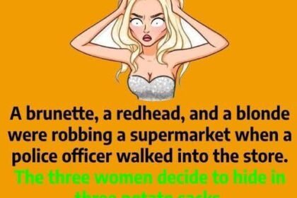 A brunette, a redhead, and a blonde were robbing a supermarket