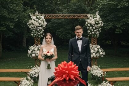 A Coffin Decorated With A Bow Was Brought To Our Wedding
