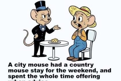 A city mouse had a country mouse stay for the weekend