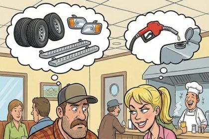 A long-haul trucker slid into a booth at a busy highway café
