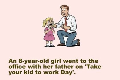 An 8-year-old girl went to work with her father