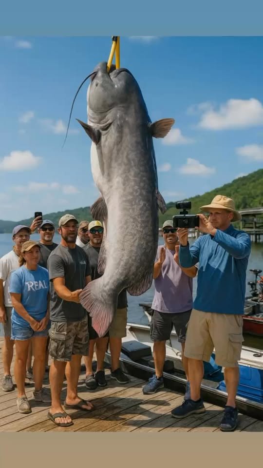 They laughed, posed for photos with their prize, and someone joked that with a fish that size, they could feed an entire town. Tourists, amazed by its size, came closer, filmed, took selfies, and children tried to touch the huge gray body, coated in a thick layer of slime. — “Look at that, it’s a giant!” — someone shouted from the crowd, and the fishermen straightened up proudly, as if the praise was meant for them personally.