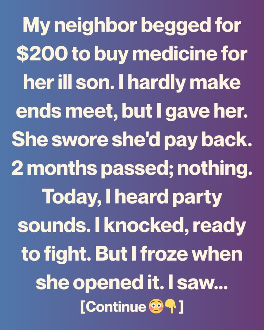 My neighbor knocked on my door two months ago, her face blotched from crying, her voice barely steady. She begged me for $200—money she needed to buy medicine for her sick son. I don’t have much myself; some weeks I’m counting coins just to get through.