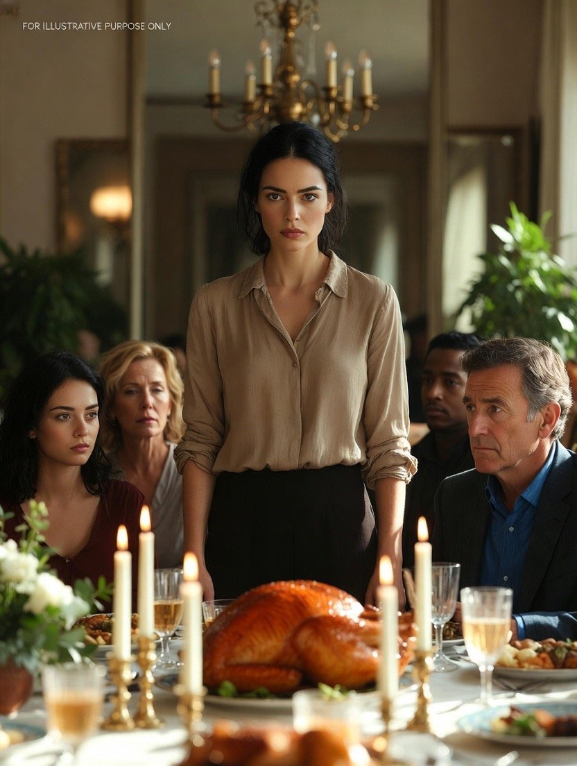 The table was loaded with turkey, wine, and flowers—every detail I had paid for.