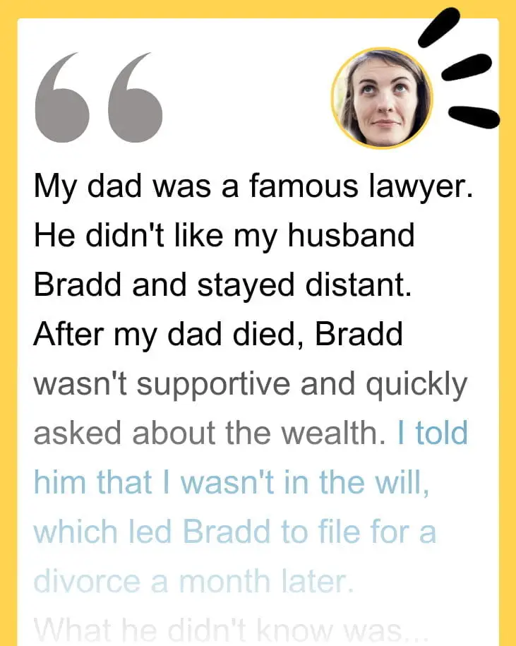 Such was the case for our protagonist today, who learned her husband sought to exploit her wealth for personal gain.