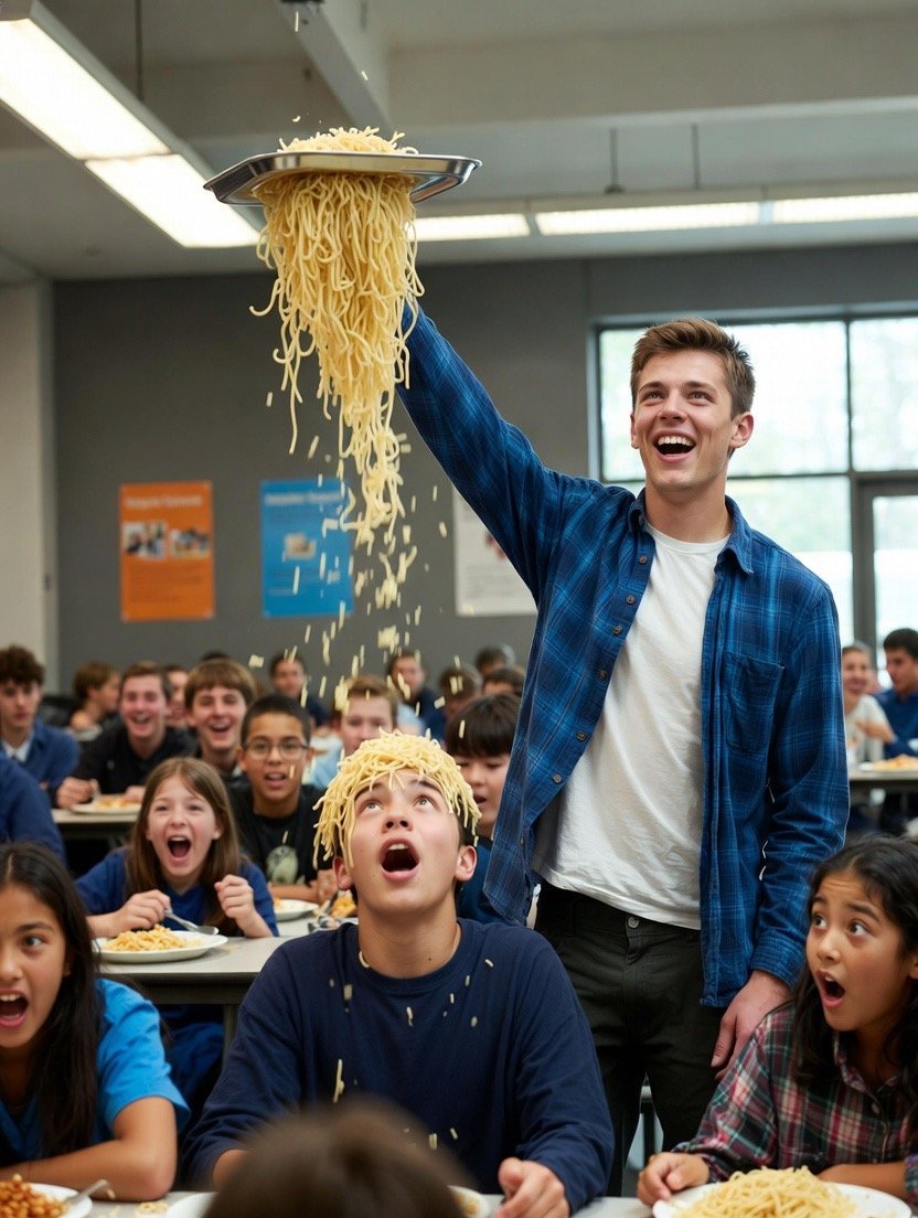 The noise of the cafeteria was almost deafening — trays clattering, laughter bouncing across the room, sneakers squeaking against the linoleum floor. It was just another lunch break at Jefferson High… until the new kid walked in. Marcus Johnson, sixteen years old, carrying his tray carefully as if he wanted no trouble from anyone.