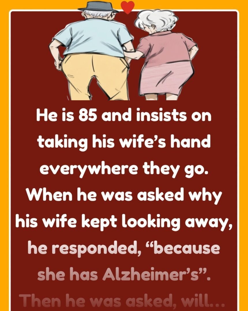 He is 85 and insists on taking his wife’s hand everywhere they go.