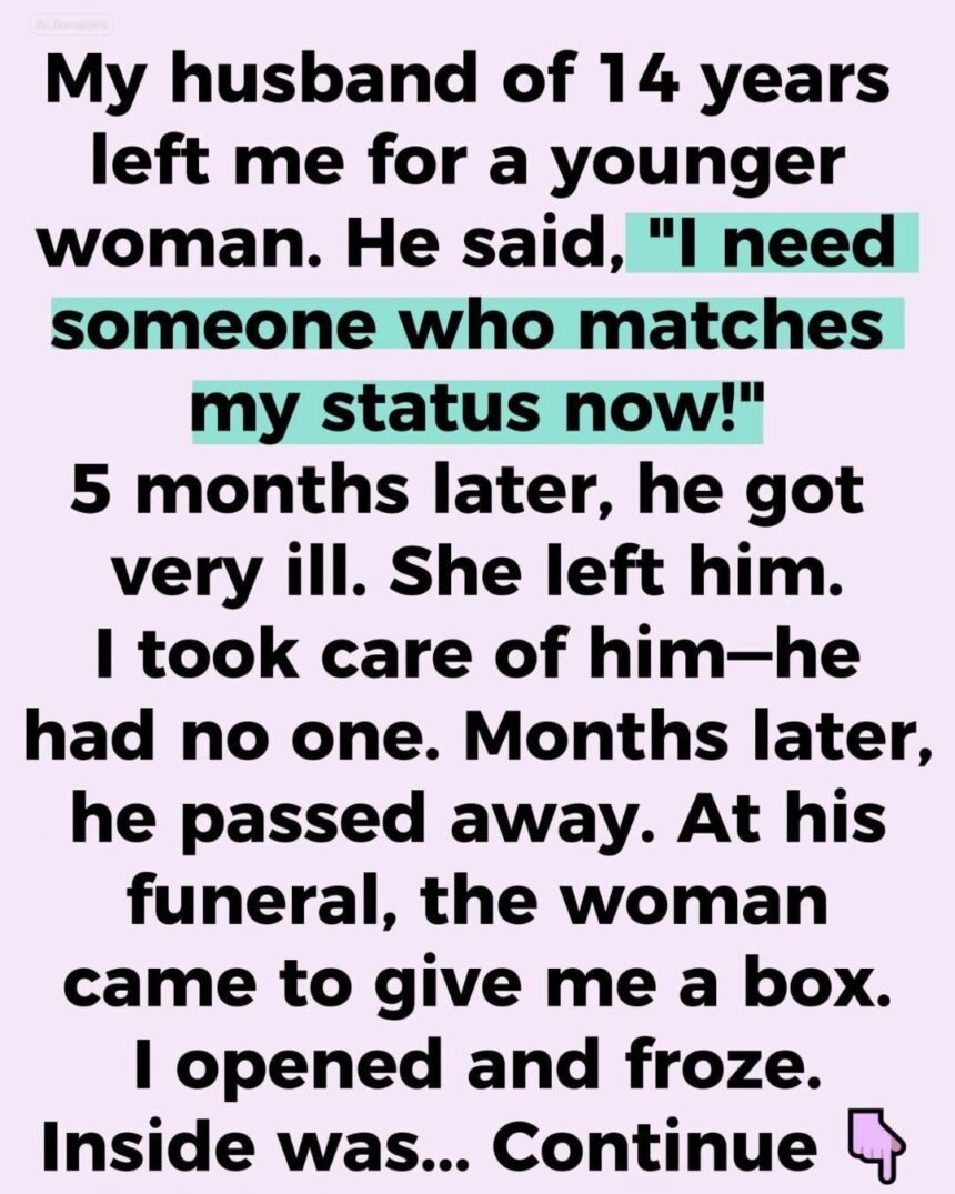 At the funeral, I saw her—the younger woman. She looked smaller somehow, stripped of confidence and certainty. She avoided my eyes as she approached, holding a simple box in her trembling hands.