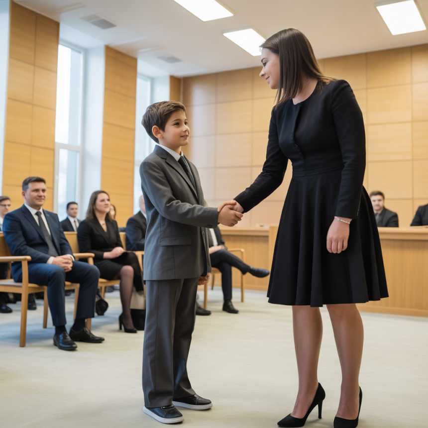 My son—my sweet, serious, thoughtful boy—sat on the bench, small legs dangling, hands folded too neatly in his lap. He was trying to hold himself like an adult, but everything about him reminded me he was still just a child facing something far too heavy. Still, he lifted his chin slightly when the judge asked if he wanted to speak.