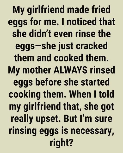 When I told my girlfriend that, she got really upset. But I’m sure rinsing eggs is necessary, right? That question kept echoing in Evan’s mind long after the awkward silence settled between him and Mira.