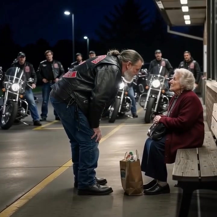 And then, amid her isolation, a sound interrupted the cold silence—the rumble of engines. A group of bikers, clad in leather jackets and tough expressions, pulled into the parking lot.