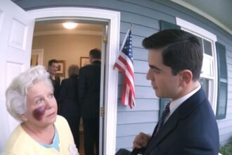 The man slightly flinches, his pain evident, but he remains upright. Annoyance flashes across Satan’s face.