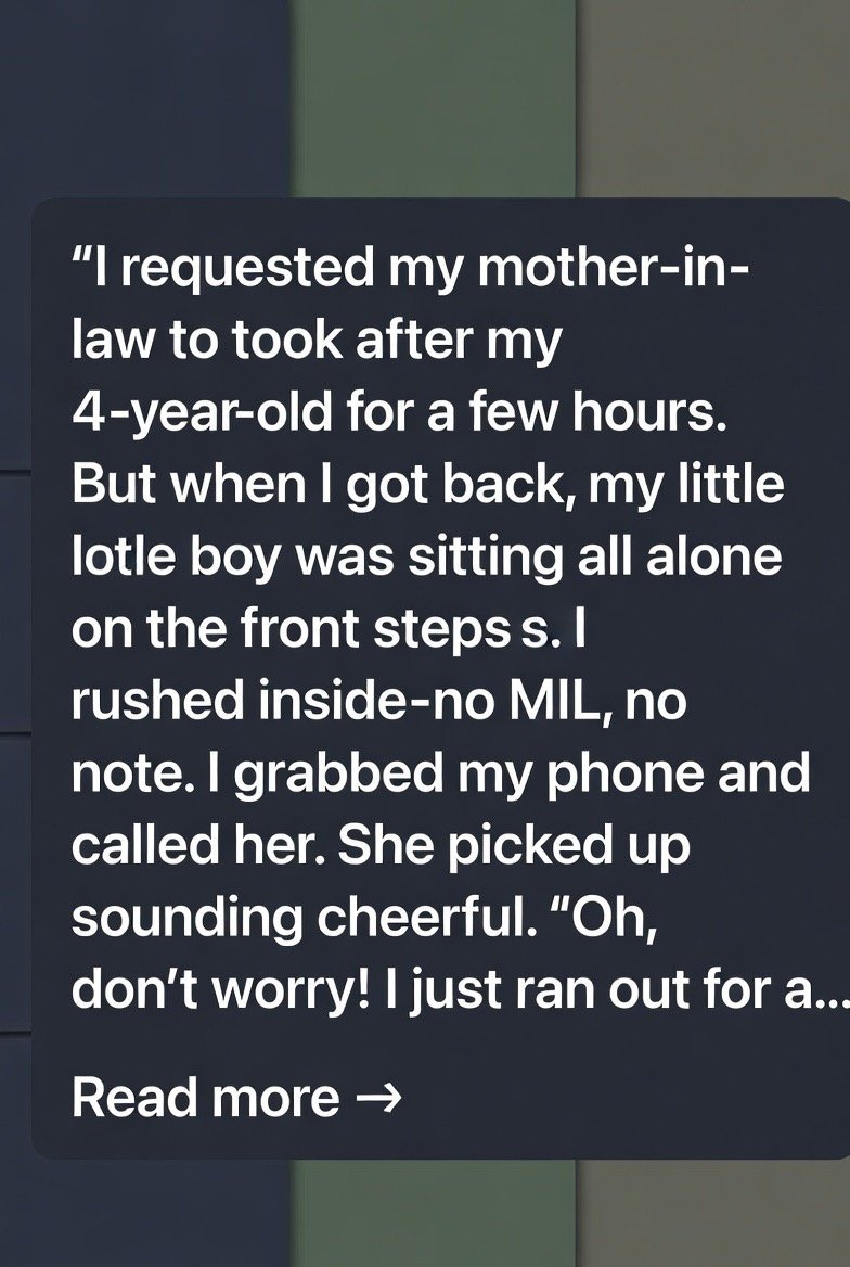 I asked my MIL to watch my 4-year-old for a couple of hours. But when I got back, my little boy was sitting all alone on the front steps. I rushed inside—no MIL, no note.